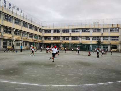 4年生は校庭で体育の学習をしました。