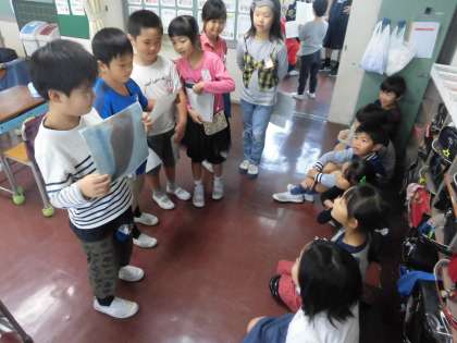 国語では、いろんな動物の体の仕組みを勉強しました。学んだことをクイズ形式にし、2年生に発表しました。動物について知らなかったことを知ることができる場面もあり、クイズは大変盛り上がりました。