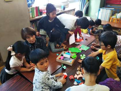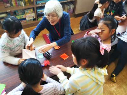 ハロウィンが近いこともあって、カボチャの折り紙が大人気!