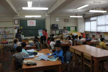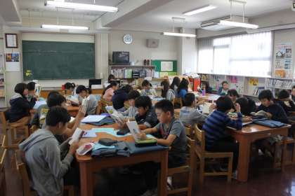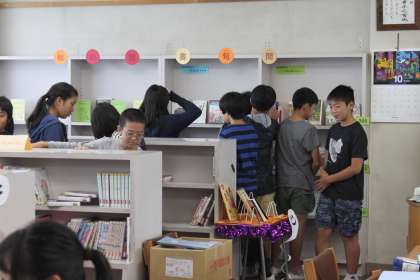 各学年で読書のための時間を確保し、図書室はフル稼働!