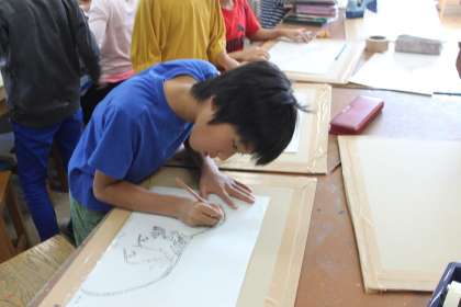 カーボン紙を使って、丁寧に慎重に写す4年生でした。