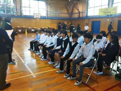 今回、ホスト役を務める5年生は緊張の面持ちで最後のブリーフィング中。
