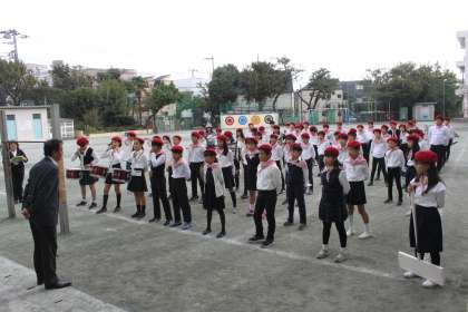 校長先生からの訓示を聞き、気持ちを引き締めました。