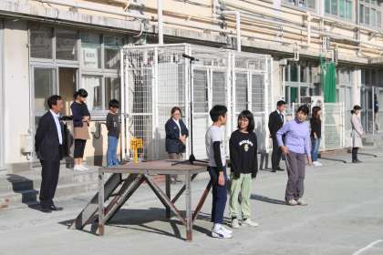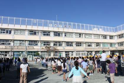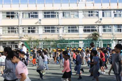 今日の運動朝会では、持久走のこつや決まりを学びました。