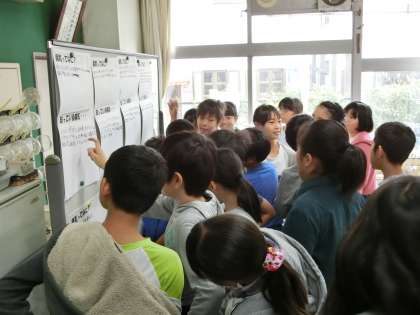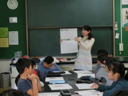 保健室の先生が講師役をつとめ、がんの仕組みについて説明します。