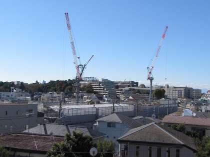 新校舎の工事がさらに進んできました。手前に見えているのは、併設される保育園の屋根の部分です。園児が日常的に生活する「家」をイメージしているのだそうです。まもなく、建物の外観が見えてきそうです。