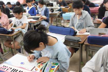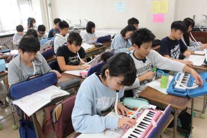 久しぶりの鍵盤ハーモニカを駆使して、オリジナルの一曲に挑む6年生でした。