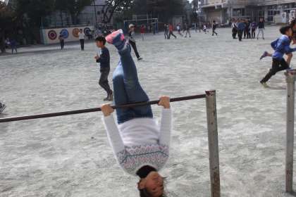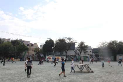休み時間の校庭では、たくさんの子達が元気いっぱいに遊んでいます。