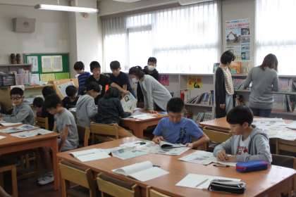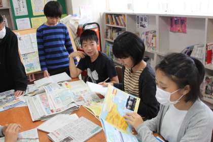 若小では小学生向きの新聞を購読しており、図書で自由に読めるようになっています。