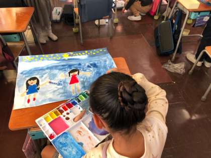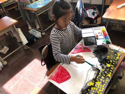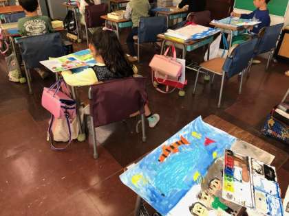 1年生は初めての展覧会を楽しんだ後、図工に取り組みました。