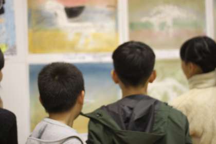 全校児童がじっくり作品の鑑賞をします。