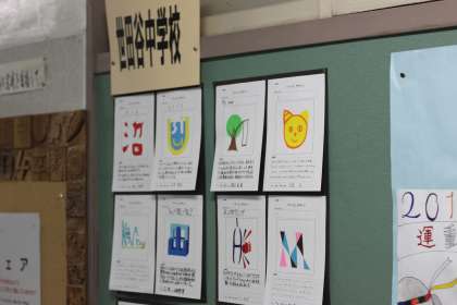 職員室前には世田谷中の生徒さんの作品、校長室前にはPTA作品が展示されています。