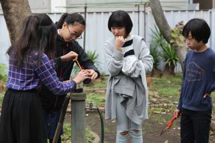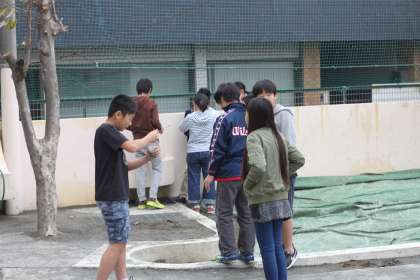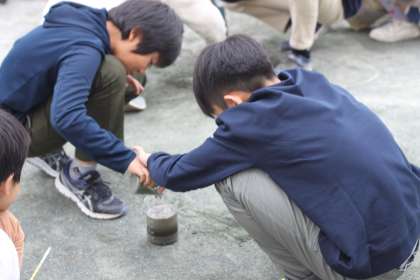 6年生が理科の学習の一環で地層を作る実験をしました。