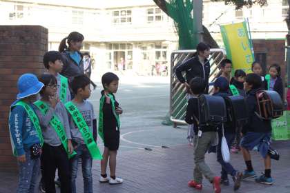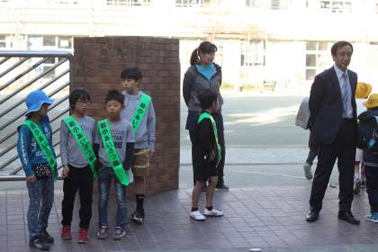 かわいい1年生から頼もしい6年生まで、大勢の子達が正門に並びます。