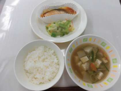 【献立】ごはん・魚のみそマヨネーズ焼き・野菜のレモンじょうゆかけ