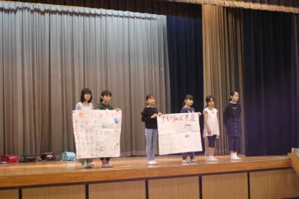 人数の多い中学年ですので、3年生が走っている間、4年生はステージ上でウォーミングアップ!