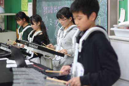 若小名物の鼓笛隊ですが、毎年この時期に6年生が5年生に向けて楽器の紹介をしています。