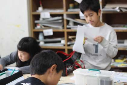 3年生は図工の時間に素敵な乗り物のイメージを作品に表しています。