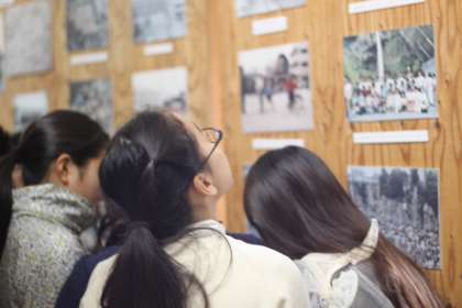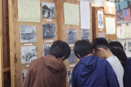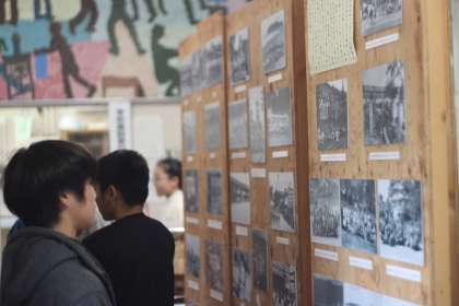 明治期から昭和、平成までの若小の歴史がパネルから学べます。