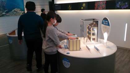 午後は東京湾を渡り、千葉県は新日鐵住金君津製鉄所へ。工場内の写真は撮れませんでしたが、見学後に入った展示コーナーの様子をお届けします。