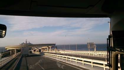 社会科見学は順調に本校に向かっています。14時50分現在、うみほたるを通過しています。前方には東京から横浜の景色が広がっています。天気に恵まれ、スカイツリーを見ることができました。