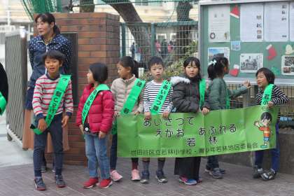 今朝も若小班2班の子たちによる若小班あいさつ運動が行われていました。