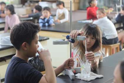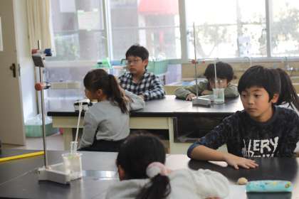氷水に食塩水を加えながら、試験管内の変化を調べます。