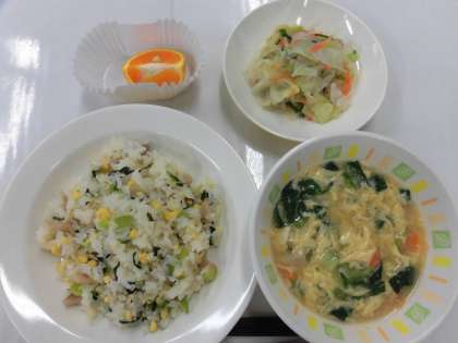 【献立】青菜のチャーハン・春雨サラダ・中華風コーンスープ・早香・牛乳