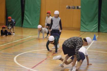 3年生が体育の時間に、体ほぐしの運動をしました。