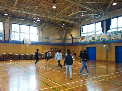 水曜日の中休み体育館は6年生に割り当てられていましたので、6年生たちが体育館せましと遊んでいます。