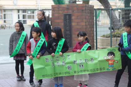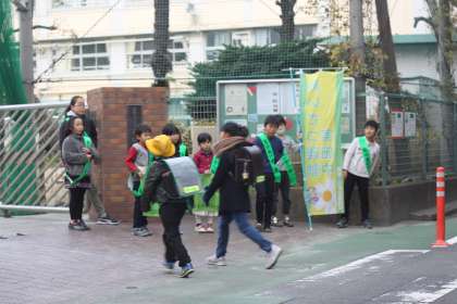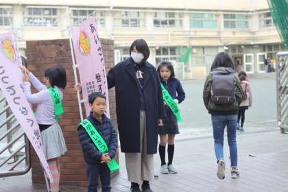 早くから登校し、寒空の下元気いっぱいのあいさつをしてくれています。