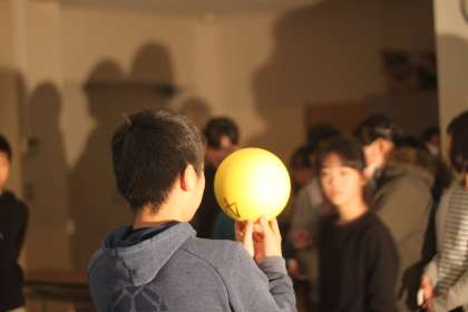太陽に見立てたスポットライトと月に見立てた黄色いボール。