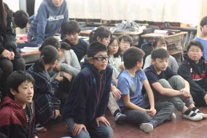 楽しい3択クイズに、まじめに答える6年生。