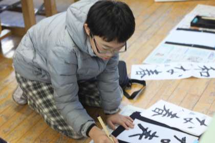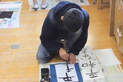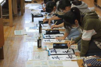 既に一度、普通の半紙に練習していることもあって、筆さばきも鮮やかな6年生。