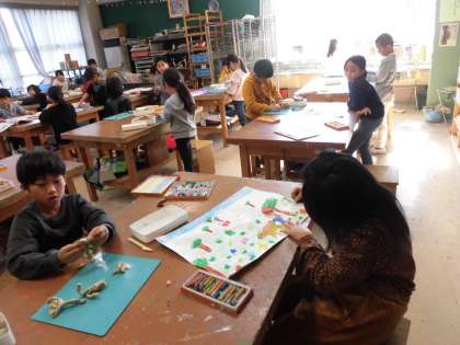 新年始まっての、初めての図工です。描きたいものをイメージしながら、楽しく絵を描きました。