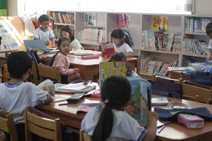 図書室でお行儀よく座って、静かに活字に向き合います。