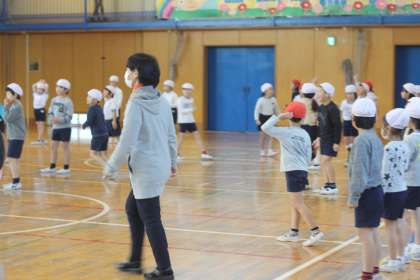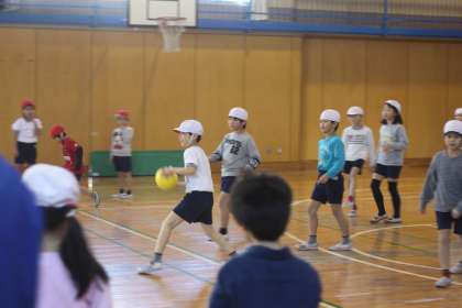2年生が体育館でドッジボール対決!