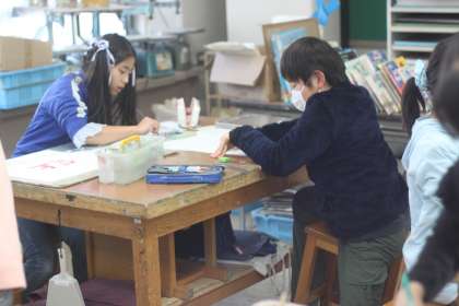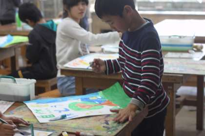 5年生は図工の時間に、環境ポスターを描いています。