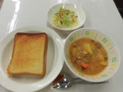 【献立】ガーリックトースト・とり肉のトマトソース煮・キャベツサラダ・牛乳