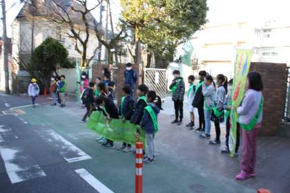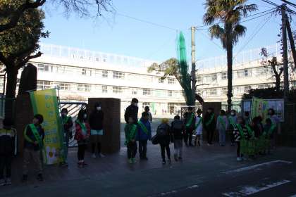 今日は若小班7班の子達があいさつ運動最終日を迎えました。