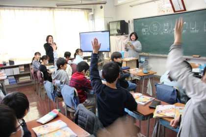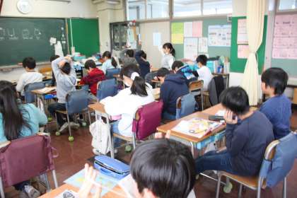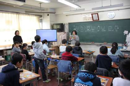 今日はイラストを見ながら、そこにあるものを英語で言う活動をしました。