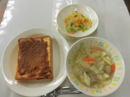 【献立】きなこバタートースト・ポトフ・パリパリサラダ・牛乳