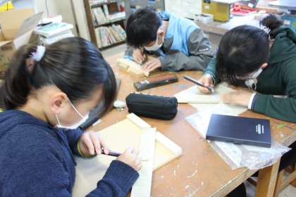 彫刻刀を手に、クオリティの高い作品に仕上げます。