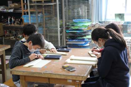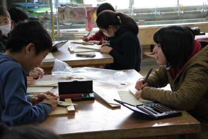 若小の後輩たちに使ってもらえるように、心を込めて彫り進める6年生でした。