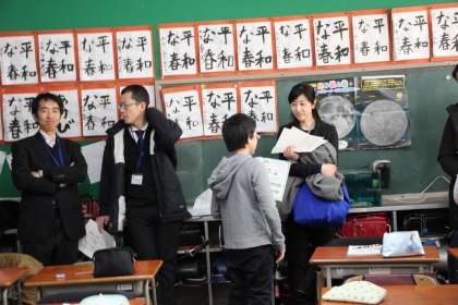 世田谷中学校、山崎小学校、城山小学校の先生たちが若小に集結し、授業参観をしました。