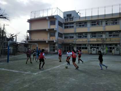 6年生が体育の時間にサッカーをしました。