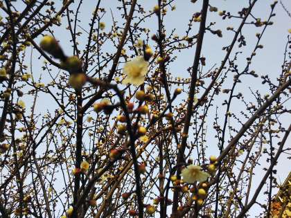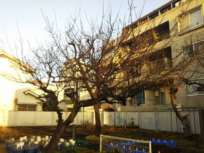 校舎北にある梅の古木に、今年も花が咲きました。