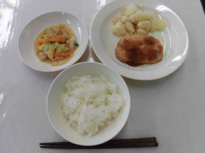 【献立】ごはん・豆腐入りハンバーグ・和風ソース・粉ふきいも