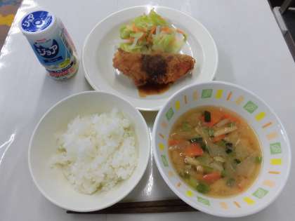 【献立】ごはん・魚のフライ・野菜の甘酢かけ・みそ汁・牛乳