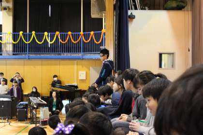 一人ひとりにお礼を述べた後では、合奏で6年生の歌の伴奏をしてくれました。